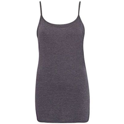 Womens Plain Sleeveless Ladies Stretch Round Scoop Neckline Camisole Long Strappy Vest Tank Top Plus Size (26-28, Dark Grey, Numeric_26)