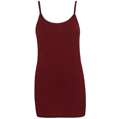 Womens Plain Sleeveless Ladies Stretch Round Scoop Neckline Camisole Long Strappy Vest Tank Top Plus Size (8 10, Burgundy, Numeric_8)