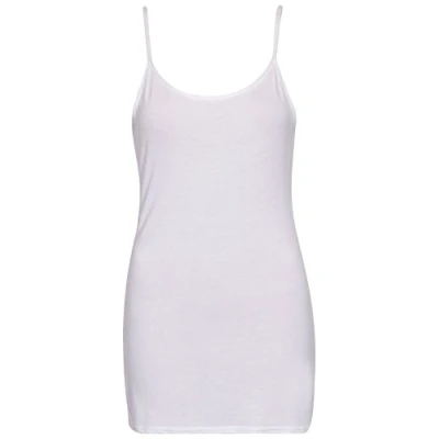 Womens Plain Sleeveless Ladies Stretch Round Scoop Neckline Camisole Long Strappy Vest Tank Top Plus Size (8 10, White, Numeric_8)