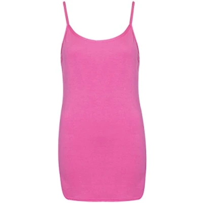 Womens Plain Sleeveless Ladies Stretch Round Scoop Neckline Camisole Long Strappy Vest Tank Top Plus Size Cerise 18 20 (XXL)