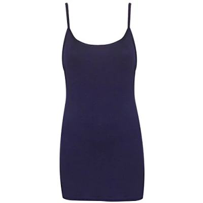 Womens Plain Sleeveless Ladies Stretch Round Scoop Neckline Camisole Long Strappy Vest Tank Top Plus Size Navy Blue 14 16 (L/XL)