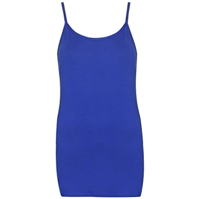 Womens Plain Sleeveless Ladies Stretch Round Scoop Neckline Camisole Long Strappy Vest Tank Top Plus Size Royal Blue 18 20 (XXL)