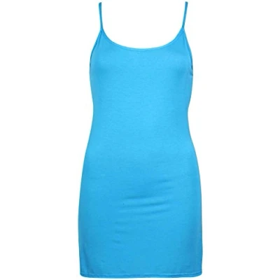 Womens Plain Sleeveless Ladies Stretch Round Scoop Neckline Camisole Long Strappy Vest Tank Top Plus Size Turquoise 18 20 (XXL)
