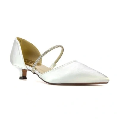 Womens Point Toe Court Shoes Ladies Low Kitten Heel Ivory Satin Diamante Strap Bridal Party Pumps Size 4