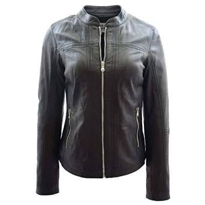 Womens Real Leather Classic Biker Style Jacket Tayla Black 10