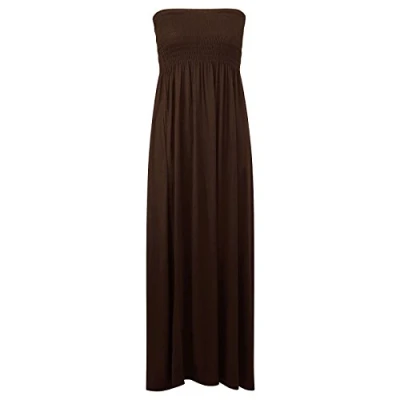 Womens Sheering Bandeau Boobtube Gather Strapless Summer Beach Maxi Dress 8 22 Chocolate