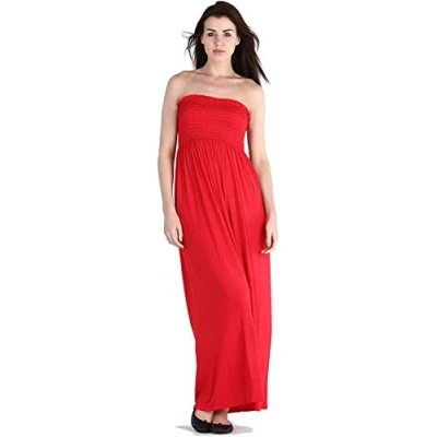 Womens Sheering Bandeau Boobtube Gather Strapless Summer Beach Maxi Dress 8 22 Red