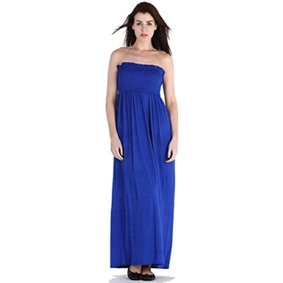 Womens Sheering Bandeau Boobtube Gather Strapless Summer Beach Maxi Dress 8 22 Royal Blue