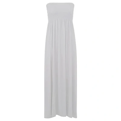 Womens Sheering Bandeau Boobtube Gather Strapless Summer Beach Maxi Dress 8 22 White