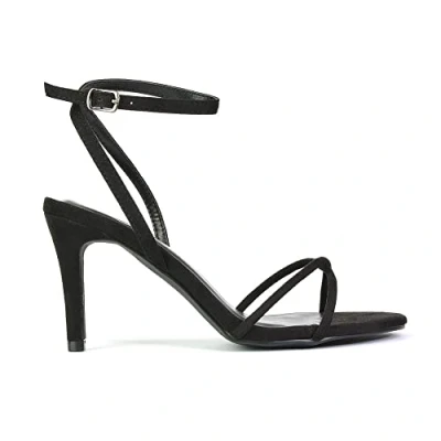 Womens Stunning Strappy Ankle Strap Sandals With Buckle Fastening Designed With An Open Toe, Slim Straps And A Secure Buckle, These Mid Stiletto Heels Offer Just The Right Amount Of Lift The Open Toe Design Is Perfect For Showing Off Your Pedicure While Keeping Your Feet Cool Heel Height: 3.2 Inch / 8 CM Available In Black Faux Suede, Lilac Synthetic Leather and Silver Metallic