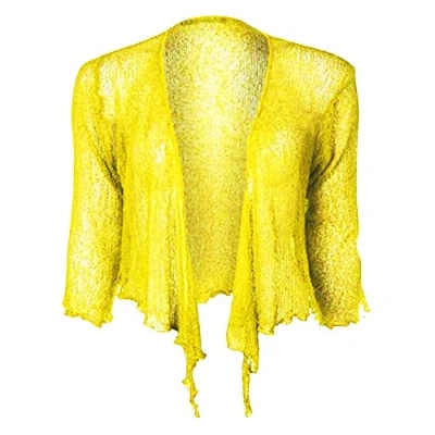 Womens Tie Up 3/4 Sleeve Ladies Fine Knit Bolero Cropped Stretchy Shrug Top 8 14, One Size Lemon New in