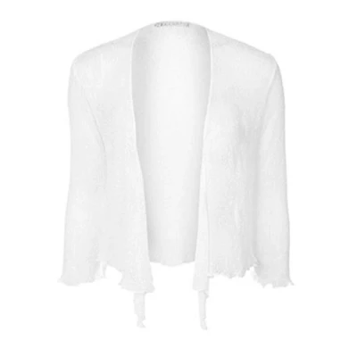 Womens Tie Up 3/4 Sleeve Ladies Fine Knit Bolero Cropped Stretchy Shrug Top 8 14, One Size White Must Have Summer