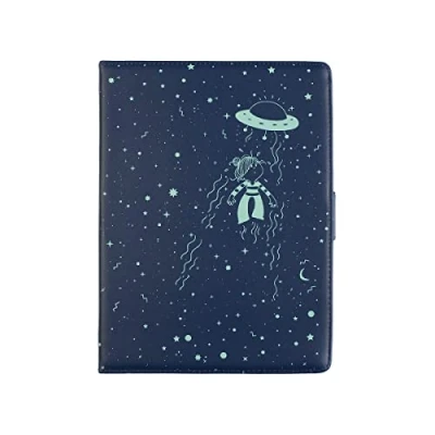 WONDEE Universal Tablet Case from 10.2 to 10.4 Inches Book Type with UFO Design on Navy Blue Background