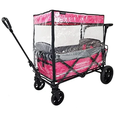 Made with high quality sheet, this rain cover is transparent, light, and portable Small holes on the sides for ventilation Velcro entrance for easy access, loading, and unloading For WonderFold X2 Wagon