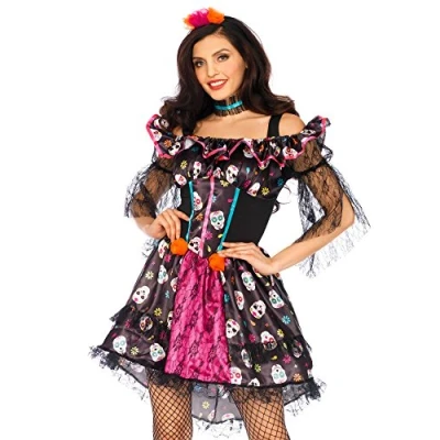 Wonderland W5040606101 Day of the Dead Fancy Dress Costume, Women, Multicoloured, UK 12 14