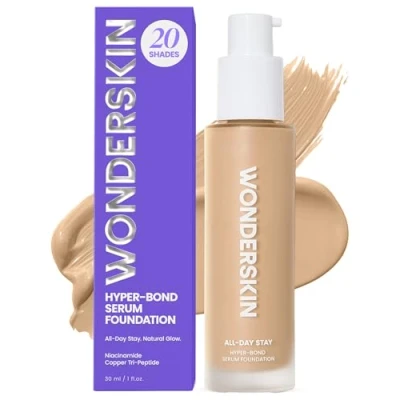 Wonderskin Hyper Bond Serum Foundation Waterproof, Transfer Proof, 24HR Longwear Face Makeup with Niacinamide & Hyaluronic Acid Lightweight, Natural Finish, Vegan Cruelty Free (Bliss)