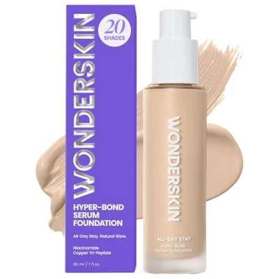 Wonderskin Hyper Bond Serum Foundation Waterproof, Transfer Proof, 24HR Longwear Face Makeup with Niacinamide & Hyaluronic Acid Lightweight, Natural Finish, Vegan Cruelty Free (Echo)