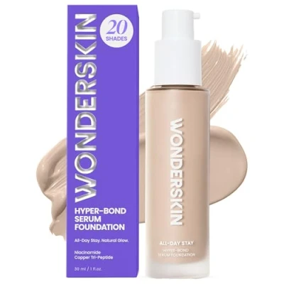 Wonderskin Hyper Bond Serum Foundation Waterproof, Transfer Proof, 24HR Longwear Face Makeup with Niacinamide & Hyaluronic Acid Lightweight, Natural Finish, Vegan Cruelty Free (Moonstone)