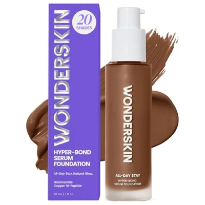 Wonderskin Hyper Bond Serum Foundation Waterproof, Transfer Proof, 24HR Longwear Face Makeup with Niacinamide & Hyaluronic Acid Lightweight, Natural Finish, Vegan Cruelty Free (Moxy)