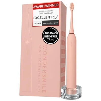 Wondersmile Sonic Toothbrush PRO Test Winner 2025 100 Days Risk Free Electric with 4 Cleaning Programmes Smart Brush Head (Atomic Rose)