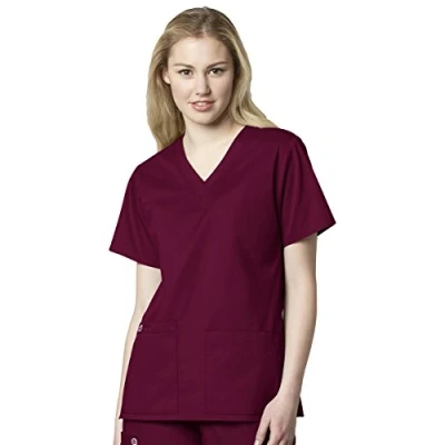 WonderWink 101XWINE3XL WonderWORK Women's Work Uniform V Neck Top, Wine, Extended 3XL Size