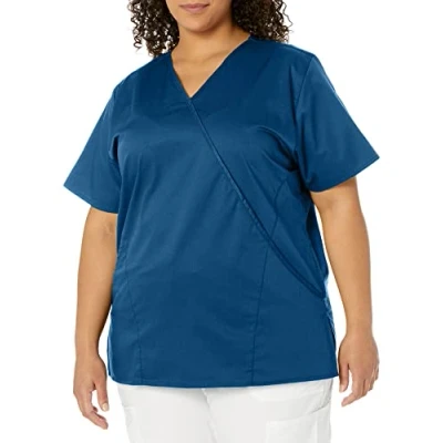 WonderWink 102XCARI5XL WonderWORK Women's Mock Wrap Top, Caribbean Blue, Extended 5XL Size