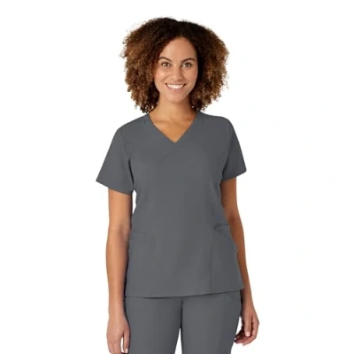 WonderWink 102XPEWT3XL WonderWORK Women's Mock Wrap Top, Pewter, Extended 3XL Size