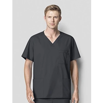 WonderWink 103APEWTLG Wonder Work Men's Multi Pocket Top, Pewter, Standard L Size
