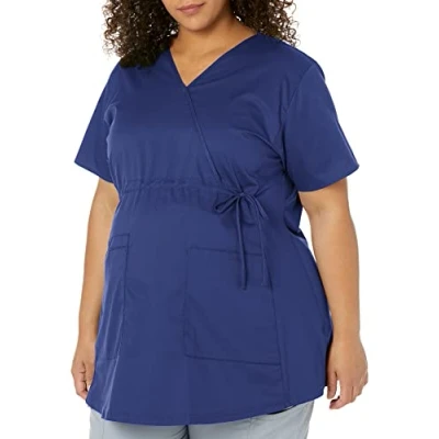 WonderWink 145XNAVY3XL Wonder Work Women's Maternity Mock Wrap Top, Navy, Extended 3XL Size