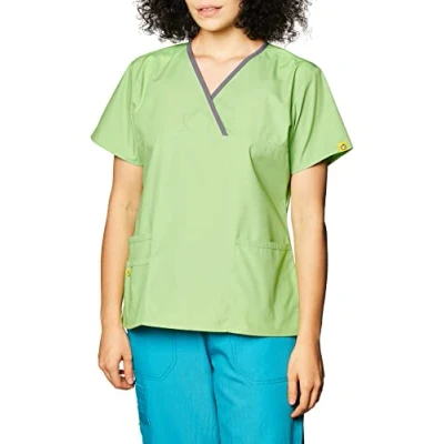 WonderWink 6026AGAPMD Origins Women's Charlie Fit Y Neck Mock Wrap Top, Green Apple, Standard Medium