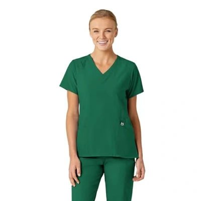 WonderWink 6155AHUNTSM W123 Women's Stylized V Neck Top, Hunter Green, Standard S Size