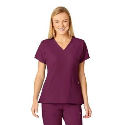 WonderWink 6155AWINELG W123 Women's Stylized V Neck Top, Wine, Standard L Size