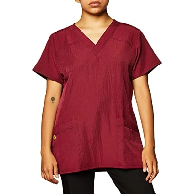 WonderWink 6214YWIN5XL Four Stretch Women's V Neck Top, Wine, Big Extended 5XL Size