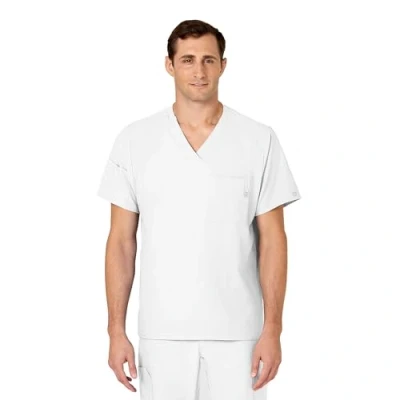 WonderWink 6355AWHITSM W123 Men's V Neck Top, White, Standard S Size
