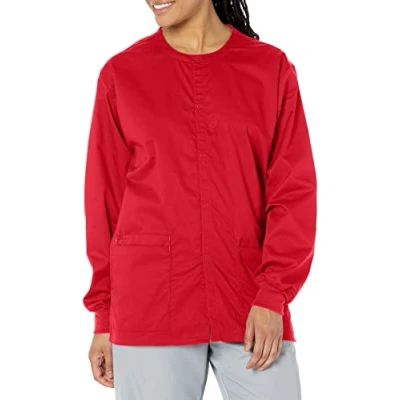 WonderWink 800XREDT3XL Wonder Work Unisex Snap Front Jacket, Red, Extended 3XL Size