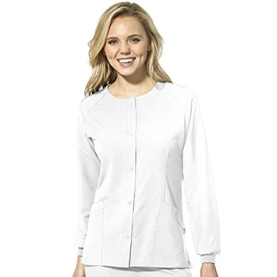 WonderWink 8155AWHITXS W123 Women's Crew Neck Warm Up Jacket, White, Standard XS Size
