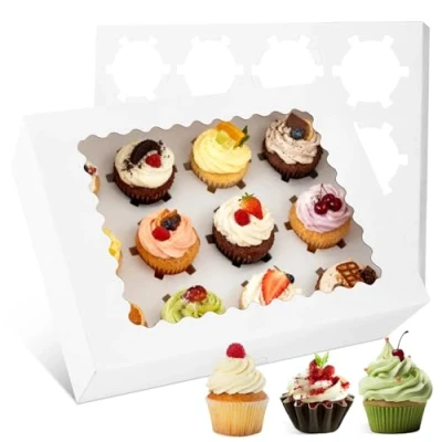 Woobroo 10pcs 12 Hole Cavity Cupcake Boxes