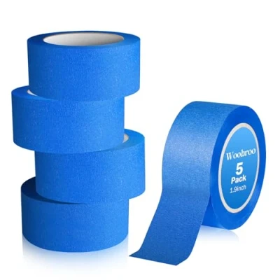 [Package Contents] Includes 5 rolls of blue masking tape, each measuring 50mm × 50m. Made from masking paper coated with water-based adhesive. Features rich color and meticulous craftsmanship. [Easy to Use]This blue masking tape is quick and easy to use—tear it by hand. Simply pull the tape to the desired length, then tear it cleanly by applying pressure sideways. Finally, press firmly to adhere it to the target surface. [Residue-Free] This blue masking tape with a smooth surface offers high-temperature resistance (80°C-130°C), UV resistance, and moderate adhesion. It peels off cleanly from smooth surfaces without leaving any adhesive residue. [Purpose] The exceptional blue masking tape delivers crisp, clean lines to help you achieve precise edges during painting, trimming, edge finishing, and masking tasks, effectively preventing paint bleed. It is also suitable for various packaging sealing, light masking, and sealing applications. [Versatile Applications]This blue masking tape is suitable for artistic spraying, wall painting, edge finishing, automotive painting, DIY crafts, and other applications, finding widespread use in both industrial and household settings., Manufacturer: Woobroo