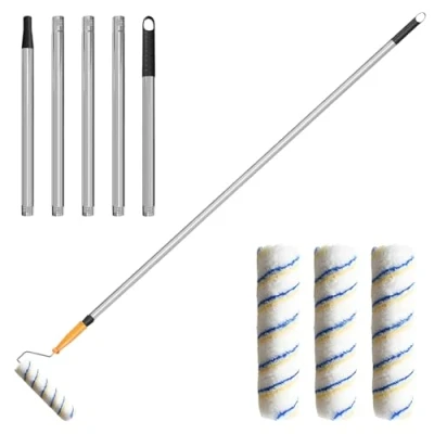 Complete Indoor And Outdoor Paint Roller Set: Includes one 9-inch roller frame, five stainless steel extendable poles, and three 9-inch ceiling paint rollers for smooth and efficient painting Adjustable Extendable Paint Roller Handle: Telescopic pole length adjusts from 15 to 78 inches to suit users of different heights Quick Assembly And Non-Slip Grip: Features a secure anti-slip handle for steady control during painting. Rollers can be easily changed to switch between different colours or paint types Professional Synthetic Fibre Sleeve: Holds more paint for faster coverage and a smooth even finish. The 9-inch roller combined with a sturdy pole offers an excellent painting experience Versatile Painting Applications: Ideal for home decoration construction projects and property refurbishment perfect for painting walls and ceilings, Manufacturer: Woobroo