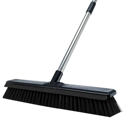 Large Push Broom Head: This push broom has large broom head with wider coverage, you can quickly clean the floor to save you time. Heavy Duty Push Broom Outdoor: You can use the outdoor brooms for sweeping patio,shop, garage, yard, garden, deck, concrete as a industrial broom or household broom. Stiff Bristle Broom:This commercial grade outdoor broom feature special split-end bristle technology,so that capture fine dust effectively.Crafted with durability in mind, our outdoor broom features a sturdy hard bristle head and a solid thicker handle. This combination ensures that the broom can withstand heavy-duty use and will last for years to come. The stiff bristles are durable and you can use this push broom as outdoor broom to sweep stone, gravel, leaves and snow.Rough irons with anti-rust coating. The soft foam sheath protects your hands during cleaning. Long Handle: This push broom is ergonomically designed and has an adjustable long handle that can be adjusted from 50" to 65". Its ergonomic design and comfortable grip make sweeping a comfortable and efficient experience. The broom's long handle allows you to maintain an upright posture while sweeping, reducing strain on your back and knees. No more bending over or crouching down.