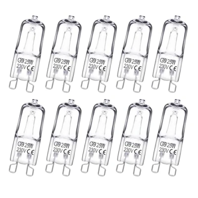 Bright and Energy-Efficient G9 Halogen Bulbs: These 25W/40W G9 capsule bulbs deliver a crisp, warm white light (2700-3000K), perfect for task lighting in kitchens, bathrooms, and halogen desk lamps. Energy-saving yet brighter than many LEDs Long-Lasting & Durable Design: Made with quartz glass and tungsten filament, these G9 halogen bulbs offer up to 3,000 hours lifespan. Resistant to vibrations and frequent switching—ideal for oven lights or pendant fixtures Dimmable and Bright Enough: Lower the filament temperature by modifying the voltage and get progressively less light output, Soft warm white light, bright enough for your fixture. High CRI for True Colour Clarity ensures natural, distortion-free lighting, enhancing home décor, artwork, or vanity mirror bulbs Easy Plug-and-Play Installation: Direct replacement for old G9 bi-pin bulbs—no rewiring needed. Compatible with G9 lamp holders, chandeliers, and under-cabinet lighting. Fits standard UK voltage (220-240V) Multipurpose Indoor Use: G9 Halogen are suitable replacements for a range of ceiling lights, crystal lamps. Works in ovens, microwave closet lights, wall sconces, ceiling spotlights, and appliance bulbs (check fixture specs). Great value for households or electricians