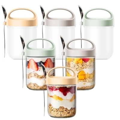 【Portable On-the-Go - Handle Spoon Design】 The mason jar overnight oat glass cereal cup with lid overnight is designed with a patented non-slip handle and 304 stainless steel spoon, creating a truly on-the-go healthy dining experience. The innovative 3-in-1 design takes the glass cereal cup with lid overnight to a new level of portability: a non-slip textured handle for a secure grip, a magnetic stainless steel spoon for on-the-go use, and a hidden spoon slot for perfect storage. Whether you're a white-collar worker travelling for business or a fitness enthusiast on the go, chia seed pudding jars are elegantly suited for any on-the-go scenario. 【Universal Breakfast Solution】 Prepare your breakfast the night before with our overnight oats containers. Just add oatmeal, yogurt, chia seeds, fruits, or salad, seal the lid, refrigerate overnight, and wake up to a new meal. Just add oatmeal, yogurt, chia seeds, fruits, or salad, seal the lid, refrigerate overnight, and wake up to a nutritious meal ready to enjoy. Ideal for anyone looking for a quick, healthy breakfast or a thoughtful gift. 【Wide Mouth Mason Jar - Easy Cleaning】 The breakthrough wide mouth design makes cleaning chia pudding containers easier than ever. The wide mouth design makes chia pudding containers easier to clean than ever before, making it easy to ① fit standard-sized pieces of fruit without any obstacles ② clean thoroughly without any dead space ③ enjoy directly without hassle. The 360° rotating cleaning brush included in the box makes it easy to handle the threads on the mouth of the can, and with the BPA-free glass material, every glass cereal cup with lid overnight will last for a long time. 【Airtight Glass Jar with Lid】 Keep your food fresher longer with the airtight lid on our overnight oatmeal containers. The airtight lids keep out water, dust and contaminants, perfect for storing wet and dry foods including biscuits, oatmeal, coffee beans, tea leaves and spices. 【Safety Commitment - Quality Assurance】 Our jars are carefully packed with thick foam to prevent damage during shipping. Our customer service team is ready to help you if you encounter any problems when you receive your product., Manufacturer: Woobroo