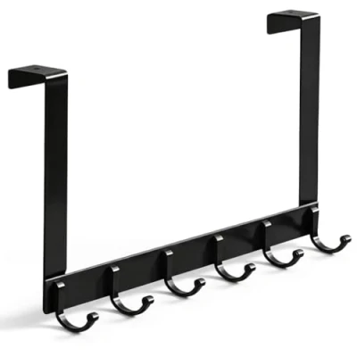 Woobroo Over Door Hooks Hanger Heavy Duty 28cm Tall, 40cm Wide, 6 for Coats, Towels, Bags, Clothes Ideal Bathroom, Bedroom, Kitchen (Black)