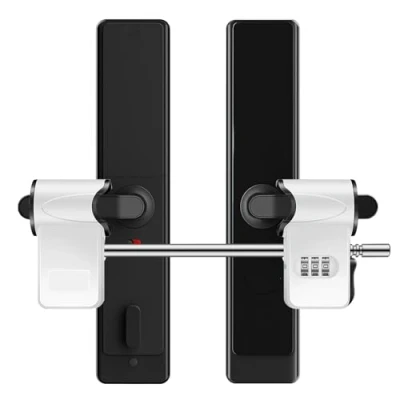 Crafted from durable ABS plastic and reinforced zinc alloy, this robust patio door security lock features a dual-layer structure that effectively resists damage and deformation. Its sturdy construction protects door handles from scratches while providing long-lasting security for French doors and sliding patio doors This easy-to-use combination patio door lock enhances home security systems. Designed for French and double doors, the three-digit code mechanism deters forced entry while allowing quick access for authorised users Compatible with horizontal double-handle configurations, this 26cm french door security lock fits most French, double-glazed, and patio door systems. Note: Not suitable for vertical or curved handles—please verify dimensions before purchase Requires no drilling or screws! This French door security lock installs instantly: press the button, slide onto handles, and click to lock. An ideal non-permanent security solution for tenants and homeowners An essential handle lock for bidirectional doors, suitable for patio security, balcony doors, and interior French doors. Its simple yet efficient design ensures convenience while effectively deterring intruders, Weight: 1.543235834 pounds, Manufacturer: Woobroo