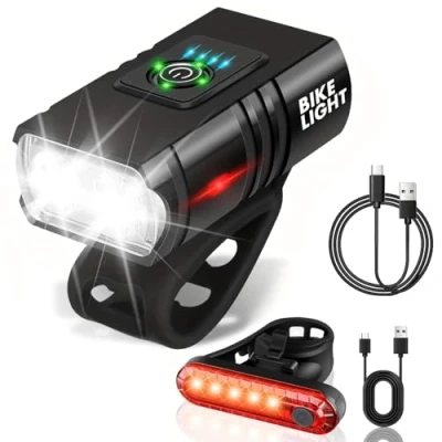 Ultra-Bright LED Illumination: Equipped with high-intensity LED bulbs, offer ultra-bright illumination, our rechargeable bike lights ensure enhanced visibility on busy roads or dimly lit paths, enhancing your safety whether cycling during the day or at night. You can adjust the mode to your liking. Our headlights emit a steady, bright light. Ideal for city streets and off-road adventures 6+4 Lighting Modes For Headlight+Rear Bike Light: 6 Lighting Modes for Front Bike Light: Strong Light(wide light), Low Light(wide light), Strong Light(spotlight), Strong Light(all bright), Respiration Flashes(double lights are on), Strobe(double lights on); 4 Lighting Modes for Rear Bike Light: strong/slow flash/explosive flash/fast flash, brightness can be adjusted Fast USB Charging & Long-Lasting Battery: Enjoy the convenience of USB charging with no need for battery replacements. Convenient USB charging allows you to quickly power up your lights without hassle. The front and rear lights come with built-in high-capacity batteries that offer extended usage, ensuring reliable lighting for all your rides.. With extended battery life, these lights provide consistent brightness for longer rides without worrying about sudden outages Durable, Weatherproof Construction & Quick Installation: Built to endure the elements, these lights feature a robust waterproof design (IPX5) with advanced waterproof material, allowing for reliable performance in rain, fog, or challenging outdoor conditions. Perfect for year-round use. Designed for effortless attachment without any tools, these bike lights can be installed on any bike within seconds, flexible and adjustable silicone tape that fit securely on handlebars, seat posts, and frames of all bike models, from road bikes to mountain bikes, ensuring a firm grip on any terrain Multiple Lighting Modes for Versatility: Choose from various light modes, including steady, flashing, and SOS settings, to suit your riding environment. Easily adjust to increase visibility in low-light conditions or alert other road users. If you have a friend or family member who loves cycling, they will love this gift