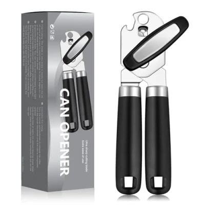 Woobroo Tin Opener Can Manual, Multifunctional Handheld Heavy Duty Opener, Stainless Steel Easy Turn Knob Bottle Kitchen Essentials, Black