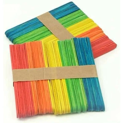 Wood Craft Lollipop Sticks Wooden Popsicle Assorted Colours Pack of 100