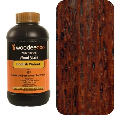 WooDeeDoo Water Based Wood Stain Dye Ready to Use Environmentally Friendly Solvent Free Odour 450 ml English Walnut
