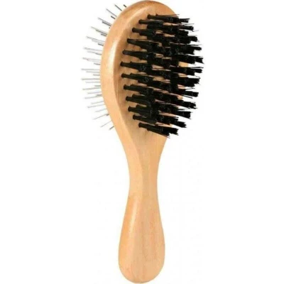 TRIXIE wooden round brush, ideal for the gentle care of your dog's coat. With its nylon and metal bristles, it allows for effective maintenance. Dimensions: 6x17 cm, perfect for medium-sized dogs.