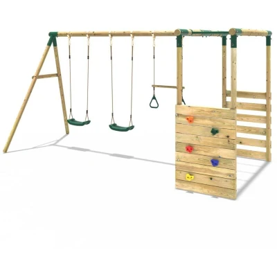 Wooden Children's Garden Swing Set with Monkey Bars Comet Green Rebo